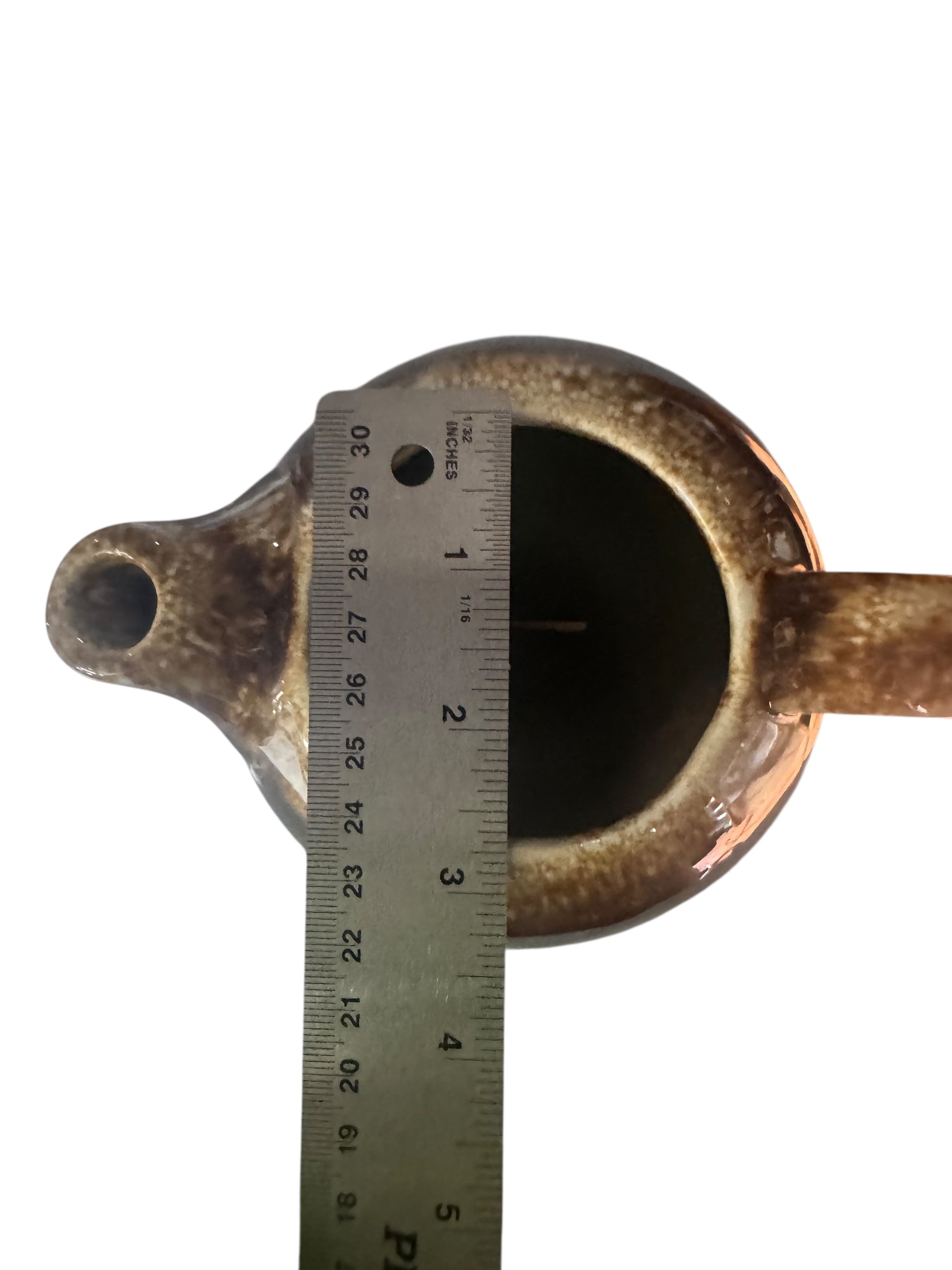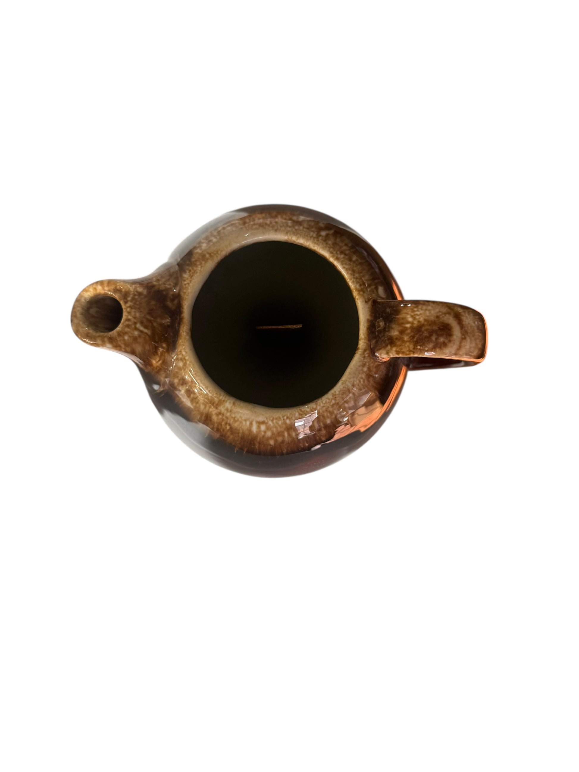 - UNIQUE REPURPOSED DESIGN: Vintage stoneware pottery tea pot transformed into a one-of-a-kind decorative candle, featuring beautiful brown drip glaze with warm tan accents, don't forget to repurpose your stoneware