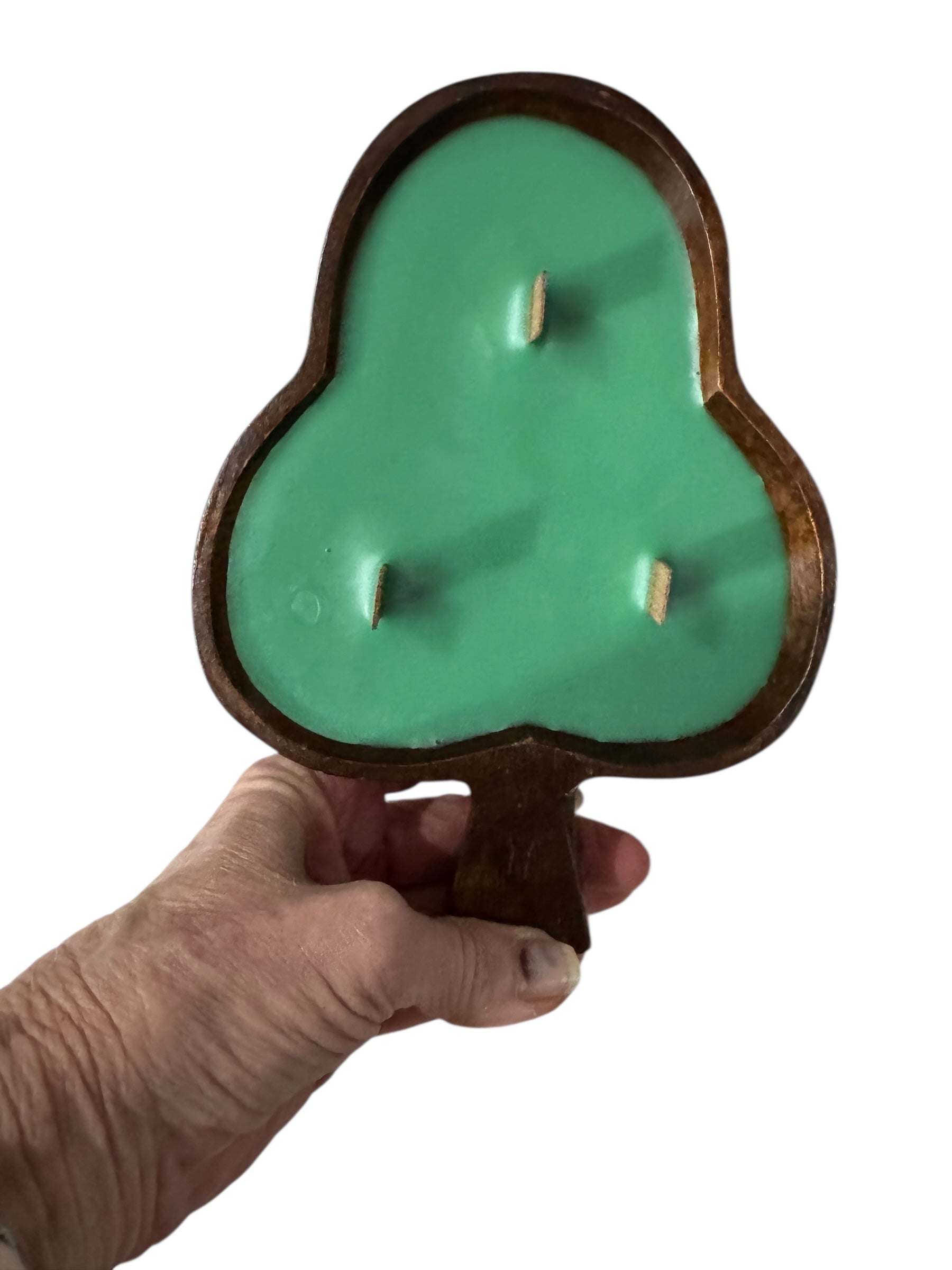 - HANDCRAFTED DESIGN: Beautiful leaf-shaped wooden vessel with a green interior, handmade from repurposed oak wood for a unique decorative touch. Repurposing a single vintage vessel into a candle can keep an item out of a landfill while adding lasting, functional beauty to a home.