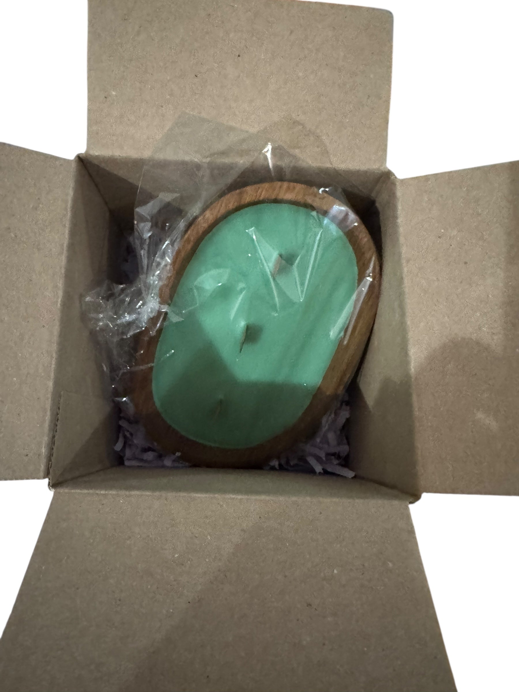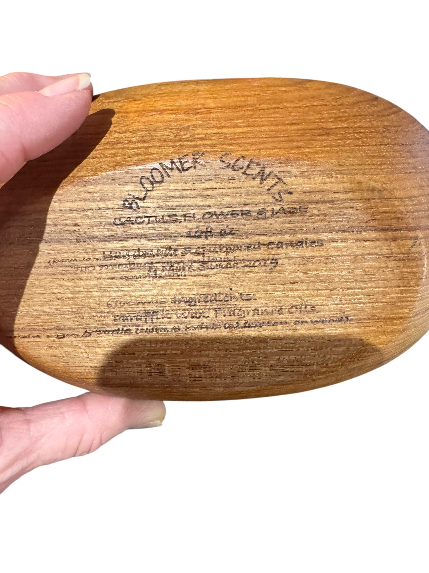 Handmade Cactus Flower & Jade Candle, Repurposed Vintage Wooden Bowl, 10 fl oz, Wood Wicks