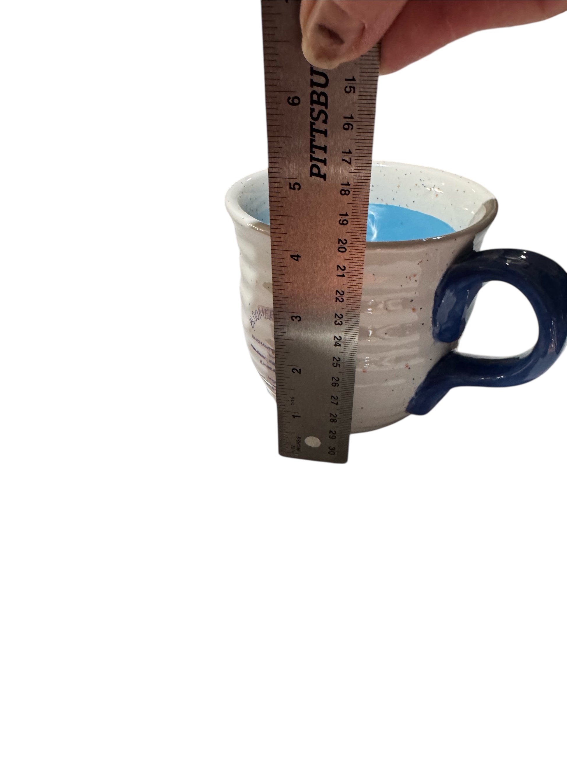 - REPURPOSED POTTERY MUG DESIGN: Housed in an authentic handmade ceramic mug with textured ridges and a vibrant blue handle, combining rustic artistry with functional home decor that can be reused after the candle burns down