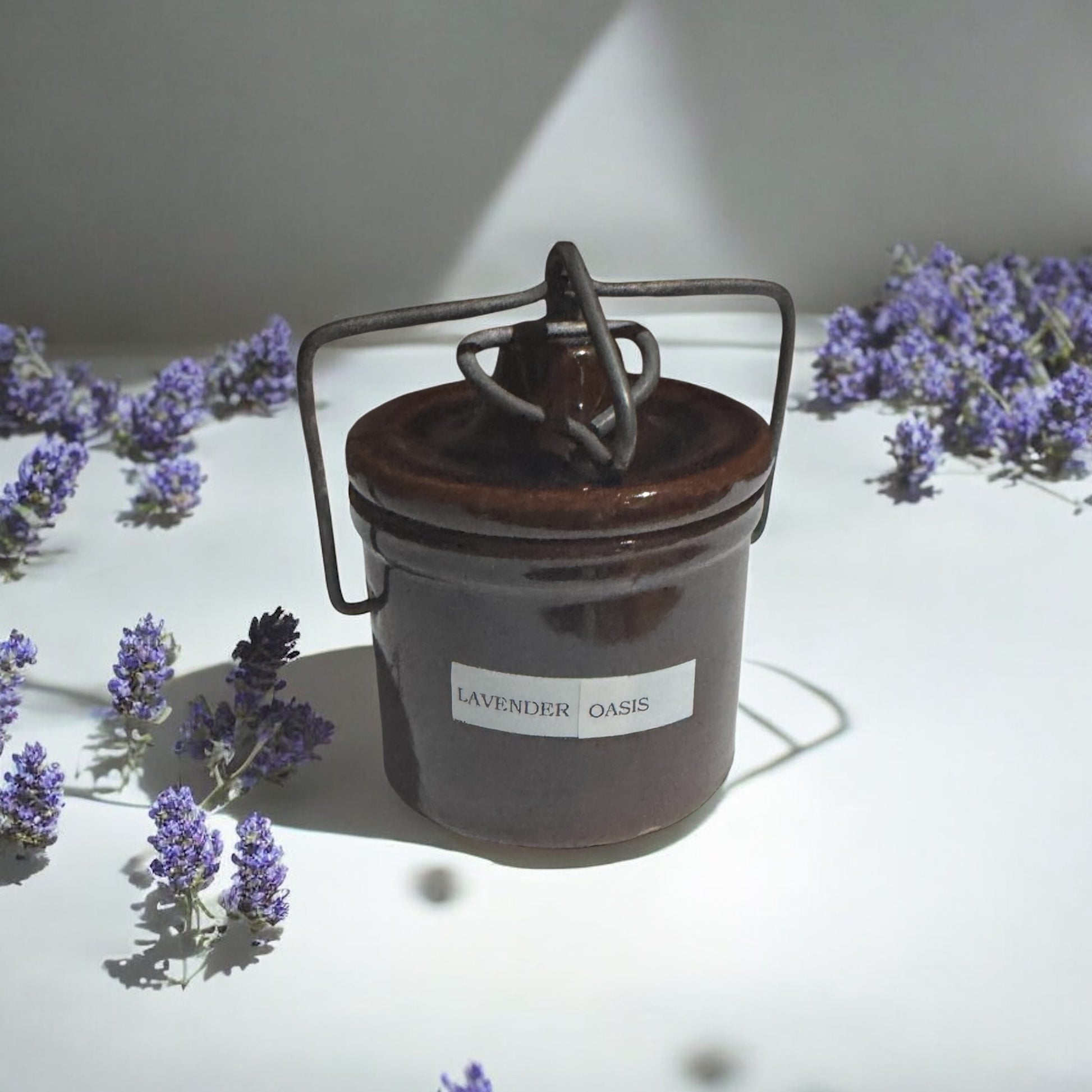 Lavender Oasis Repurposed Mini Cheese Crock 6fl oz Candle