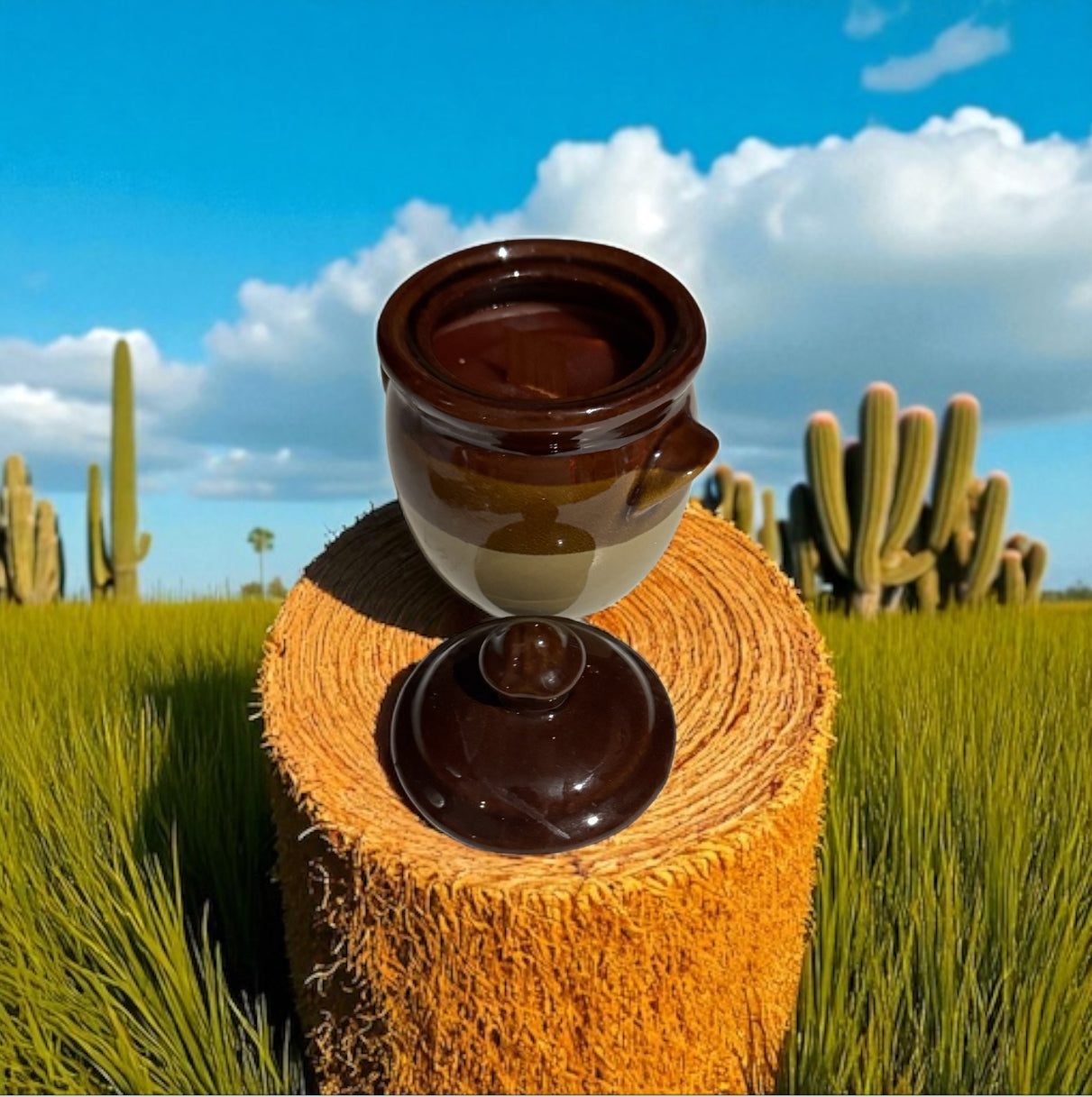 Leather 6fl oz Repurposed Vintage Mini Crock Stoneware