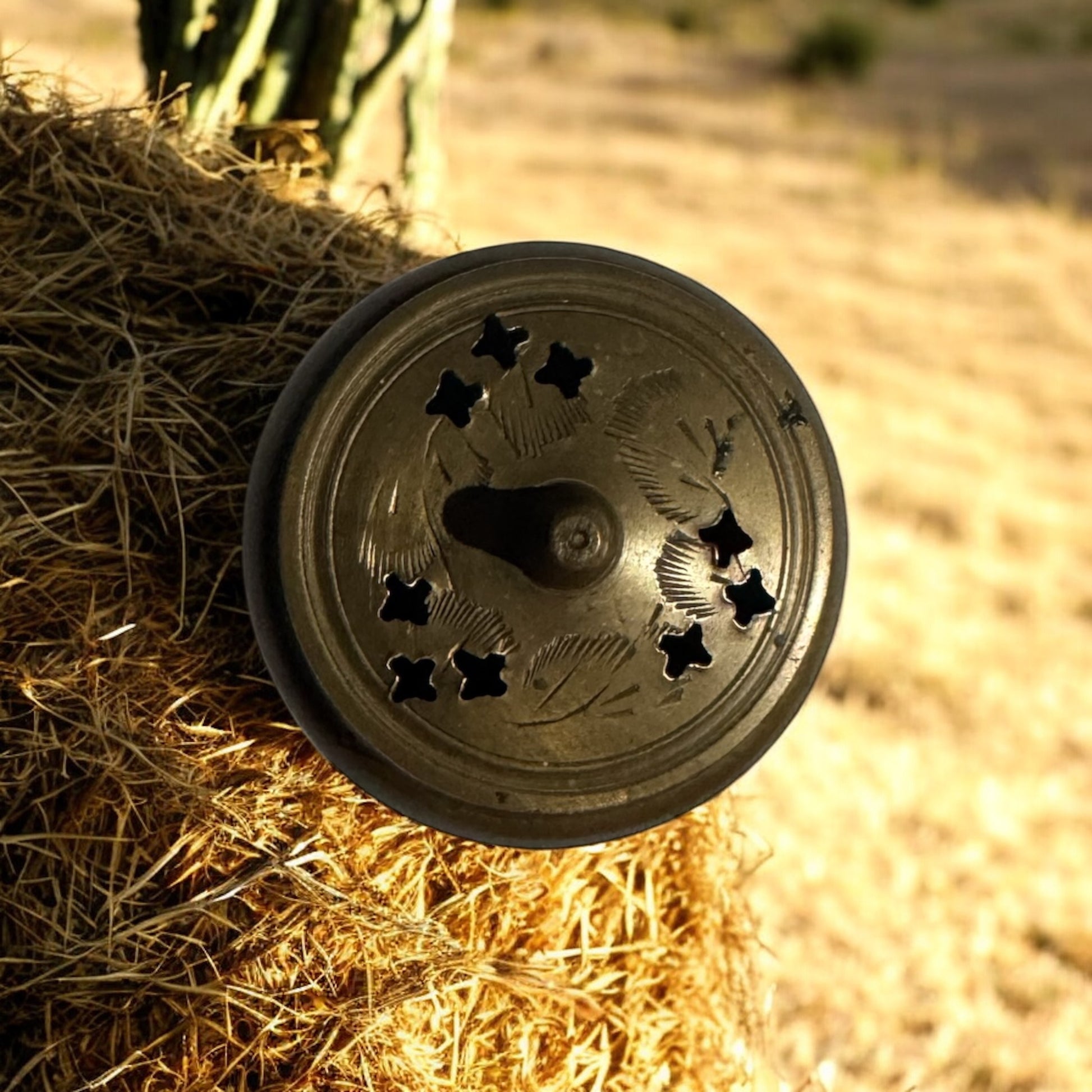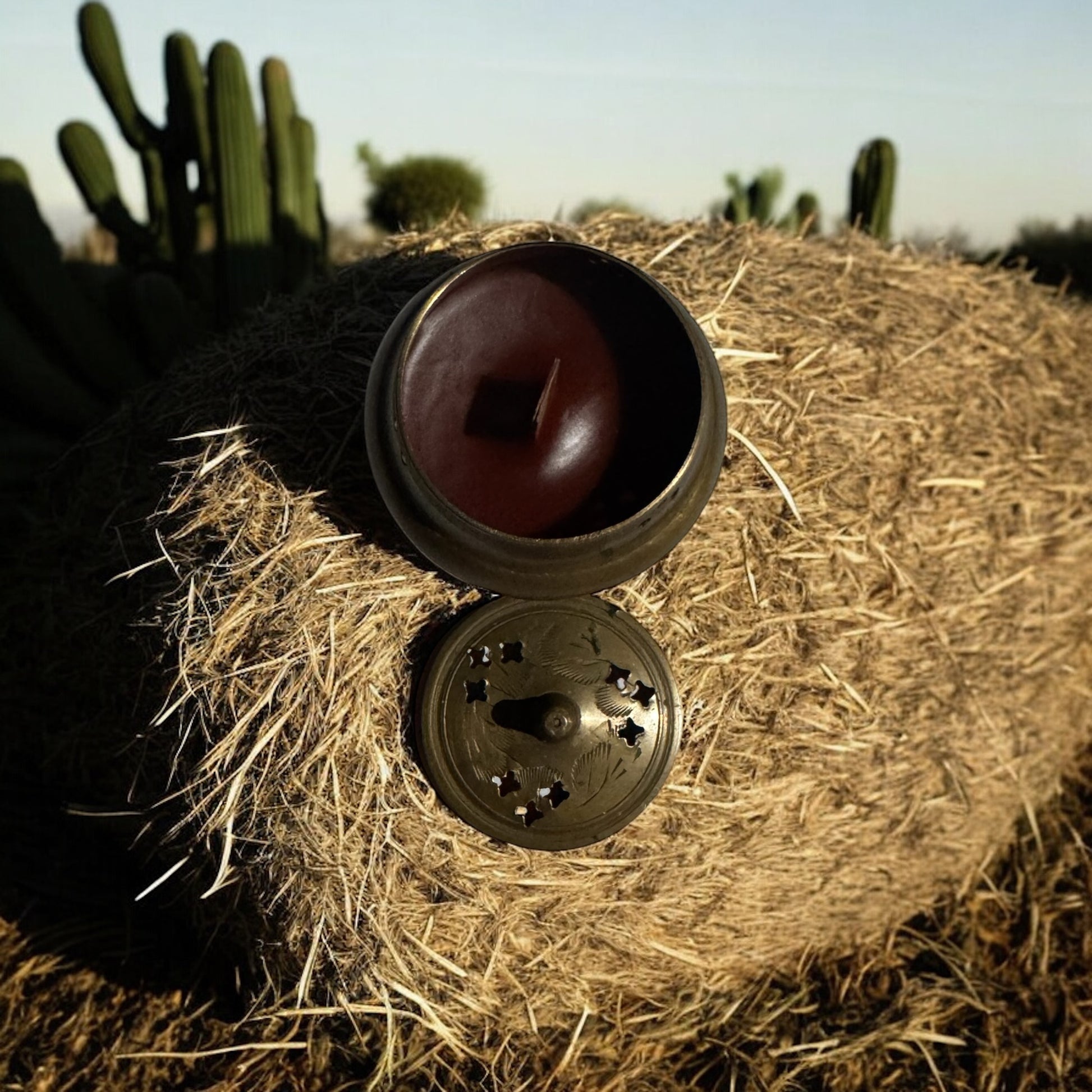 Leather Candle Repurposed Rare Brass Incense Vessel 4fl oz